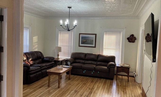 This 2600 square foot home has three bedrooms and three full bathrooms, along with two queen sleeper couches. Located on a quiet dead end street. 20 min to whiteface and 30 min to Lake Placid. Built in 1830’s and beautifully remodeled. A large kitchen with granite countertops and island. Relax in the hot tub or the living room with a propane fireplace. Private setting on one acre. Walk to get groceries, Stewart’s, liquor store, 20 main bar, coffee shop and family dollar.