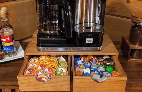 Coffee bar with creamer, sweeteners & syrups — your morning ritual, perfected