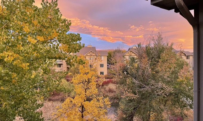 Great, very private, spacious 3 bedrooms 2 bathrooms top floor condo with a garage and a large patio; fully furnished. Biking/walking distance to parks, biking and hiking trails. The condo faces a nature preserve with a view of a pond. It is located in a beautiful complex, minutes away from the mountains and nightlife. Great for business travelers, remote workers, traveling nurses, and extended vacations. Fully furnished with stocked kitchen.