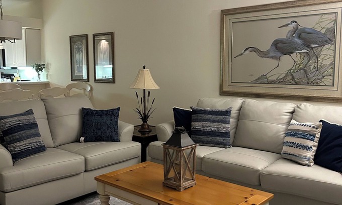 This beautifully decorated property features a fully equipped modern kitchen, a cozy king bed in the master bedroom with walk-in closet, a comfortable queen bed in the 2nd bedroom, and a twin bed in the 3rd bedroom which can also serve as an office/den. With amenities like AC, WiFi, high speed internet, large TV and a washing machine and dryer, guests can relax and unwind in comfort. The 2 full en-suite bathrooms are equipped with a walk in shower in the master and a tub/shower combo in the 2nd bath while providing privacy.