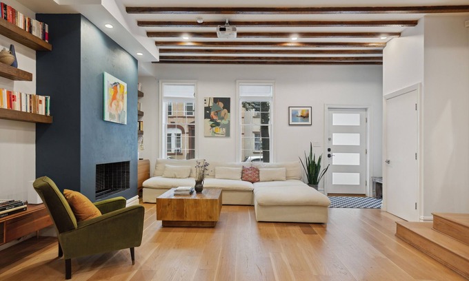 Escape to this charming townhouse in picturesque Greenpoint, Brooklyn. With 3 bedrooms, including 1 king bed, 1 bunk bed, and 1 queen bed, our property is perfect for families or groups of friends. Immerse yourself in the soothing ambiance of our cozy retreat. Indulge in a relaxing soak in the jetted bathtub, or a rain shower/steam room experience . Enjoy your morning coffee on the patio with birds chirping and dinners al fresco in the garden. If you feel like watching a movie just relax in front of our home cinema set up. You'll find the convenience of amenities like a washing machine and a dryer, WiFi and AC. The neighborhood offers beautiful parks, coffee shops and restaurants. Experience the magic and quiet of Brooklyn at our townhome while the buzzing city awaits just 20 min away and create unforgettable memories with your fellow guests.