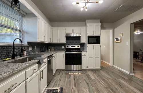 Beautifully decorated home close to downtown Tulsa and closer to all of the restaurants and shopping in Owasso. Washer and Dryer with a full kitchen and coffee bar. Plenty of room for parking in the driveway with a two car garage. 2 bedrooms have king beds and the 3rd bedroom has 4 twin beds. High speed internet with a TV in every bedroom and a large TV in the living room.