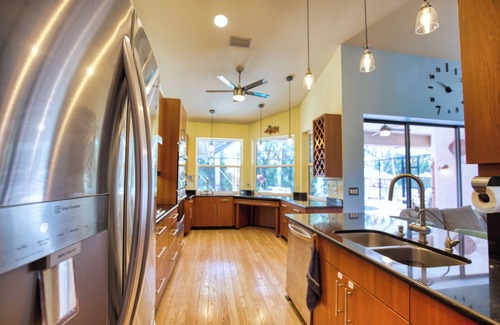 Forget your worries in this spacious and serene space. As you enter you will immediately feel at ease with the open floor plan where the living room and kitchen look out to pool area (pool is heated November-April)which includes spa and very private backyard. Split-floor plan allows for extra privacy. Intercostal kayak launch in neighborhood (2 included w/ rental). 1 mile walk to the beach and beautiful Casey Key.