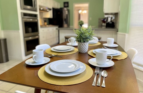 Unwind by the private pool at this spacious home located in a beautiful, established neighborhood conveniently located to amenities and easy access to the highway. With 3 bedrooms, each with a king bed, 2 rollaway twins, a queen pull out couch, and a sunroom for relaxing, there is plenty of room for the whole family. There are 5 smart TVs throughout the house so everyone can watch their favorite show or sport. We also have indoor/outdoor games for all ages and a BBQ pit for your use ★ ★ ★ ★ ★