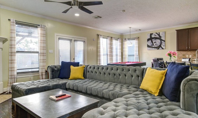 The home features a bright, open-concept layout w/ large windows, hardwood floors, & seamless flow between the living, dining, & kitchen spaces. Perfectly designed for groups, this central location ensures easy access to everything you need for a memorable stay!