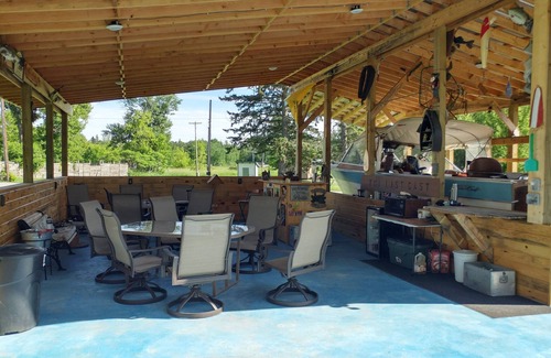 The "Musky Mansion" is a 3 bedroom spacious cabin designed to be comfortable and relaxing. The décor is a mix of Native American art and unique memorabilia from the area's celebrated fishing history. This cabin has all that is needed to "forget" your reality. Music, fish fry's and BBQ's are a mainstay on the Last Cast Patio. Relax at the “Historic and Classic” 1965 28’ Chris Craft “Last Cast” patio before and after your "Adventure". Bring your own boat or fish with us! Captain Randy has been a guide on Leech Lake for 18 years, and has over 30 years of experience. The cabin is just a 5 minute walk or 1 minute drive to the waterfront boat landing. Ample parking with electric available for your vehicles, boats or ATV's.
