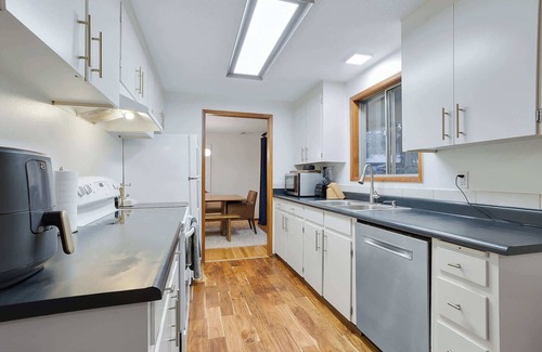 Cook your favorite meals with ease in our modern kitchen, stocked with essentials for any culinary adventure.