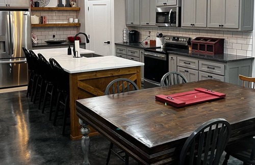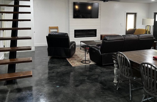 Looking for a great stay on Lake Eufaula? We've got you covered here at the Metal Mansion! Large enough for multiple families and friends. Each bedroom has it's own bathroom with plenty of privacy and enjoy two separate living room areas to gather with everyone! Lake Eufaula is just steps away. Come see for yourself!