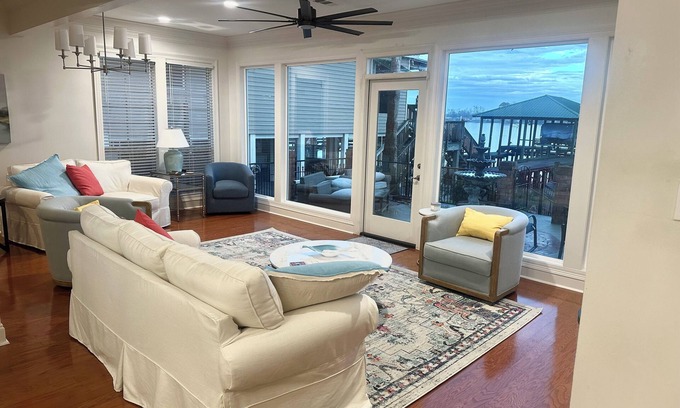 Make yourself at home in this fabulous 4-bedroom Oscar retreat. With 2 king beds, 1 queen bed, and 2 twin beds, this house is perfect for families or groups of friends looking for a peaceful getaway. Enjoy the convenience of amenities like AC, heating, WiFi, and a washing machine and dryer. The 4 bathrooms come equipped with a hairdryer, shower, and bathtub. The outdoor patio is furnished and you can use the gas grill. Enjoy the large dock for fishing and swimming. Book now and enjoy everything this house has to offer.
