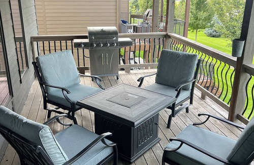 Additional amenities include: laundry room, a large oversized deck with cushioned chairs/fire pit/BBQ grill to relax at the end of the day. In addition, a walkout basement with pool table, an additional family room area with large screen TV, and couch to sleep two additional people if needed.
