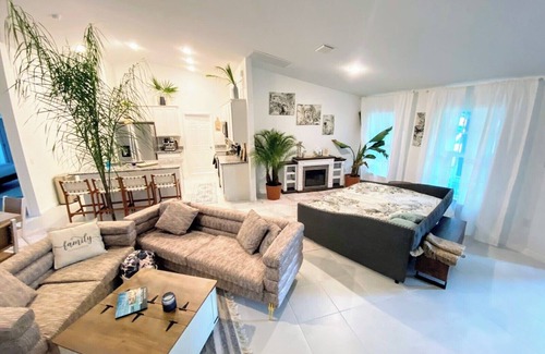 Located in Port Charlotte, this delightful 4-bedroom house offers 2 king beds, 1 queen bed, 1 bunk bed, and even a crib for families with little ones. With 2 bathrooms equipped with showers and hair dryers, guests can freshen up after a day of exploring. The living room also has a cozy sofa bed for additional sleeping space. Our place is equipped for both long or short stays to make your holiday one to remember.