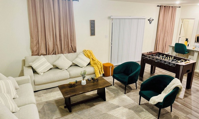Living Area: Relax on plush furnishings, watch your favorite shows, or enjoy a friendly foosball game.