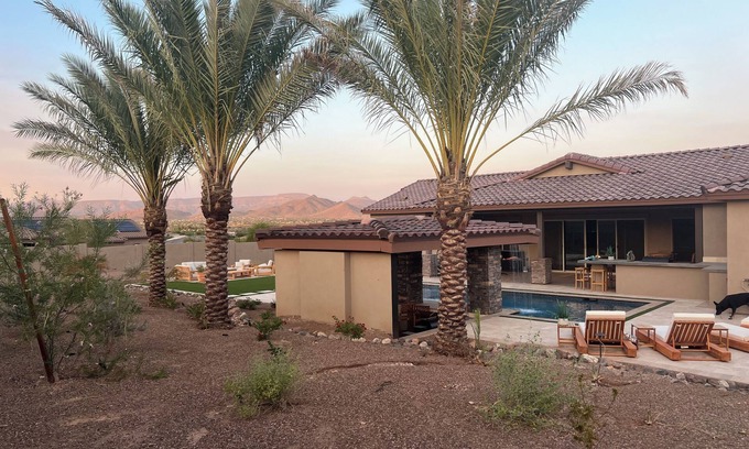 Best-rates for the Desert View Village house starts from $391 per night with includes Kitchen, Laundry, Pool, TV, Security/Safety, Bedding/Linens, Fireplace/Heating, Barbecue/Outdoor Cooking, Child Friendly, Internet, Air Conditioner, Parking, Wellness Facilities StayAndPlay offers fully equipped golf villas, golf hotels, golf resorts, luxury golf cabins, and exclusive golf retreats, making it easier than ever to find your perfect golf escape — ideal for families, peaceful getaways, or pet-friendly retreats with the whole crew.
