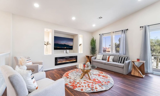 Unwind in Las Vegas at this enjoyable house. With 4 bedrooms including 1 king bed, 2 full beds, and 1 twin bed, guests will have plenty of space to spread out. The 2 bathrooms come equipped with a hair dryer for added convenience. Plus, there's an additional living room with a sofa bed for even more relaxation space. Kickback, relax, and enjoy everything Las Vegas and our house has to offer. Enjoy some dinner in the patio or test your putting skills, on the putting green. Washer/Dryer, 2 car garage, housewares, linens, and WiFi. 7 Miles to Las Vegas Airport, 3 Miles to South Point Hotel & Casino, 9 Miles to Allegiant Stadium (Raider's Stadium), 10 miles to Las Vegas Strip, 16 miles to Downtown, and 4 miles to Desert Willow Golf Course.