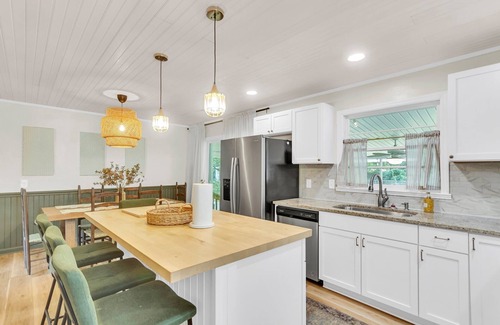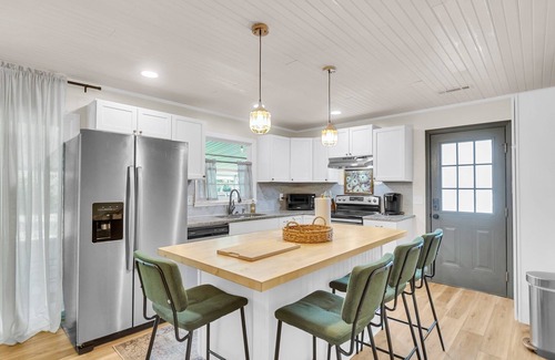 The fully equipped kitchen boasts modern appliances and all the necessary amenities for whipping up delicious meals with your friends and family. A Keurig is also available for your morning cup of coffee.