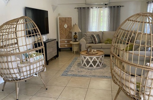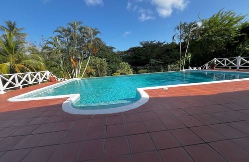 Unwind in Plymouth at this brilliant villa. With 4 bedrooms including 1 king bed, 2 queen beds, and more, this phenomenal property offers plenty of space for guests. Enjoy the convenience of amenities like hot tub, swimming pool, AC, and WiFi. The 4 spacious bathrooms with showers ensure everyone stays comfortable. You're sure to make fantastic memories with a stay at our place. For your pleasure the saline swimming pool is a large 40 x 20 feet, affording guests a cool-out at home in the beautiful sunshine of Tobago. Bicycles are provided for those active couples to explore the beautiful beaches nearby while experiencing the fresh ocean breeze and beautiful tropical scenery. The property is located on a half acre of land overlooking the gated entrance to the villa. Parking is spacious and convenient.