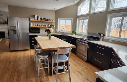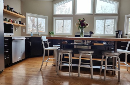 Nestled beneath the stunning Flatirons in the serene Table Mesa neighborhood, this home offers breathtaking mountain views from the west-facing windows. Whether you're unwinding by the fireplace, playing the piano, or jamming on the acoustic and electric guitars, there’s something for everyone to enjoy. Everyone will get a great night's sleep in the comfortable beds, with a choice of pillows and black out blinds. Stream your favorite shows on the entertainment system, challenge friends to a board game, or curl up with a great book in one of the many cozy nooks. The chef’s kitchen is fully stocked, making meal prep a delight. In warmer months, dine al fresco under the canopy, sip your morning coffee on the patio, or sway in the hammock while taking in the mountain views. The location is unbeatable—just minutes by foot, bike, or car to scenic trailheads, Viele Lake, and the neighborhood recreation center. Walk to parks, Whole Foods, the library, breweries, and top-rated restaurants. Downtown Boulder and the iconic Pearl Street Mall are only 15 minutes away, while Denver is a quick 35-minute drive. For nature lovers, the breathtaking landscapes of the Indian Peaks Wilderness Area and Rocky Mountain National Park are within an hour’s reach. Experience the best of Boulder with all the comforts of home—relax, explore, and make lasting memories! Licensed rental RHL-01003031