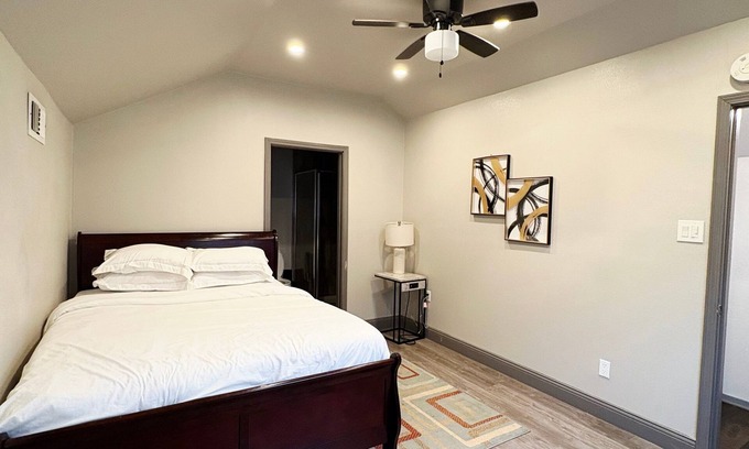 Spacious 4-bedroom, 3-bathroom family home in Round Rock. Sleeps 8 comfortably with 1 king bed and 3 queen beds. Enjoy high-speed Wi-Fi, Smart TV, PS4 console, a dedicated walk-in desk for remote work, and a fully equipped kitchen. Relax in the private, fenced backyard—perfect for kids and pets. Pet-friendly (up to 2 pets allowed with a $75 fee). Ample parking with both garage and driveway spaces. Located just minutes from Kalahari Resort, Dell Diamond, downtown Round Rock, and only 25 minutes from Austin. Ideal for families, remote workers, vacationers, and professionals seeking a cozy and convenient stay.