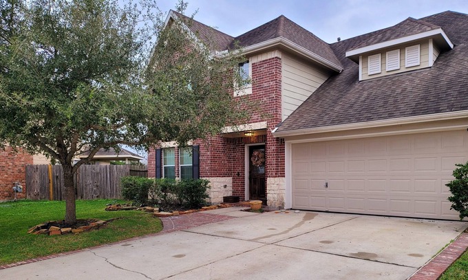A cozy homestead with neighborhood playground and splash pad, 30 minutes from Houston, Kemah, Galveston and Freeport. Two golf courses with 15 minutes of property. Fully fenced backyard for the kiddos or fur babies...!