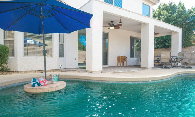 Spacious 5 Bdr home,private pool, located in Val-Vista Lakes Gilbert, AZ has 5 Bedrooms , 3 Bathrooms, and max occupancy of 10 people. The minimum rental for this property is 1 nights, but this can change depending on the season you plan on staying. Previous guests have given good rated it, and VRBO labeled it a top-rated House because of the excellent services rendered by the owner or manager of this House, and has consistently provided great experiences for their guests. Most families or guests that use it recommend it to their friends and some of them are repeat guests. House has a friendly neighborhood, and the Val Vista Lakes has interesting places to visit. If you want to learn more about the House in Val Vista Lakes, such as places to visit and things to do nearby, you can check below to learn more.