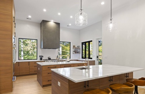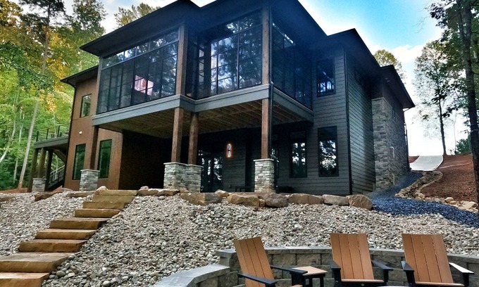 Experience Lake Keowee in style! This newly built, mid-century modern lakefront home is tucked into a quiet cove and packed with luxury amenities — including a private dock, chef’s kitchen, butler's pantry, sunroom, fire pit, and more. It's the ideal retreat for family vacations and lake adventures close to beautiful downtown Seneca and Clemson, SC.