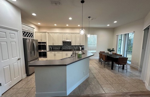 Our charming, large, newly decorated, 5 bedroom/3 full bathroom home (7 BEDS) is just 25 minutes from the beautiful, white sand of the Anna Maria island beaches! Parking is plentiful and the kitchen comes fully stocked - all that's missing here is YOU and your group. Your family will be close to everything when you stay at this centrally-located quiest and peaceful place