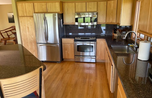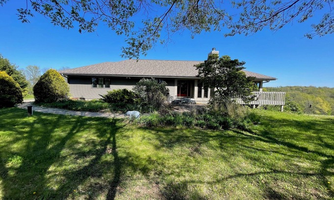 Rural Verona is waiting for you at this superb 5-bedroom fully equipped country home surrounded by verdant hills, trees, alfalfa fields and majestic vistas in all directions. Adjacent to the 800 acres of the Sugar River Wildlife Area and the 300 acres of the Madison School Forest the wildlife is abundant with regular viewing of deer, turkey, geese, cranes and songbirds. Hiking, biking, canoeing nearby. Epic and downtown Verona 5 minutes away and Madison just 15 minutes, Dane County airport 30 minutes. Sleeps up to 8 with 1 king bed, 4 queen beds, 1 twin bed, and a futon this marvelous property offers plenty of space for guests. The 3 bathrooms, each with bathtub and shower, ensure everyone stays comfortable. The modern kitchen with maple cabinets and granite counter tops is fully equipped, dining room has a round table seating 8 and living room plus outdoor deck provides the perfect gathering space for family or friend gatherings. A great place to call home base while you're away. We hope you enjoy your stay. Two night minimum and discounts for week and longer. Family friendly. Please no pets, no smoking. Property owned and managed by retired University of Wisconsin College of Agriculture and Life Sciences professor.