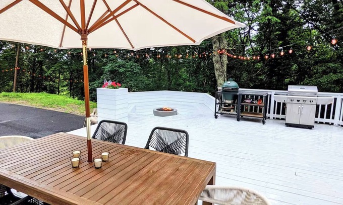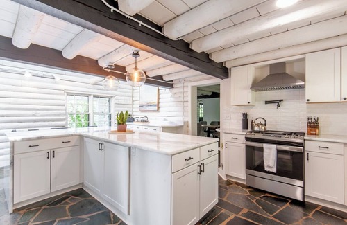 Visit our spacious and comfortable Dudley Mountain Estate for true log-cabin living, with a rustic modern vibe. Tucked away on the mountainside, yet still only minutes from fine dining, wineries, breweries, hiking, and so much more! You will be just 10 minutes from UVA, 6 miles from Charlottesville's Down Town Mall, and only 8 miles from Pippin Hill Vineyards, Potters Craft Cider, or Carter Mountain! So many must-see spots surround this hidden, secluded gem for the entire extended family to enjoy together. With 5 bathrooms and 3 queen, 1 king, 1 full, and 2 twin beds, this phenomenal property offers plenty of space for the whole family. Enjoy the terrific amenities like spacious sunken gas fire-pit, large party deck for grilling, indoor gas fireplace, large entertaining kitchen, ping-pong rec room, AC, WiFi, and multiple washing machines. Your stay here will be nothing short of magical!