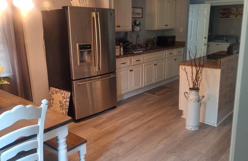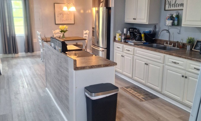 This 5-bedroom house in New Market is perfect for your escape. The property boasts 5 queen beds, 3 bathrooms, and a cool living room with a sofa bed. Guests can enjoy the serene surroundings and tremendous amenities like WiFi, AC, and a washing machine along with access right next to Flint River! It's easy to see why you'll be able to unwind at our place.