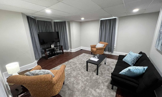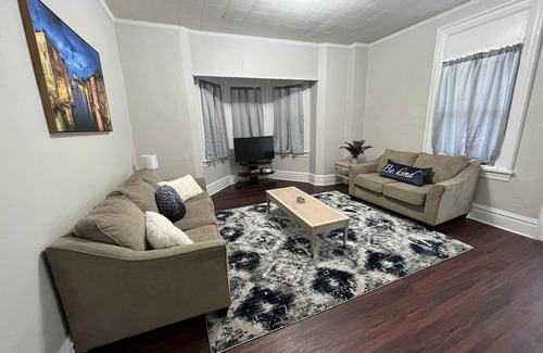 Stay comfortably in Uniontown at this 5-bedroom house. With 2 queen beds, 2 full beds, and a trundle bed, there's plenty of space for everyone. The house also features 2 full kitchens, 2 stackable washer/dryers, and 2 large living rooms with a futon for additional sleeping arrangements. This 2600sq ft home is perfect for your next gathering and a great place to call home while you're away. We hope to welcome you to Uniontown soon!