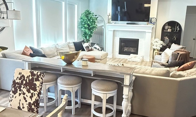 Escape to this superb picturesque house in the country. With 5 bedrooms including 2 king beds and 3 queen beds, an office space with a queen Murphy bed this home offers plenty of space for guests to relax. Enjoy the 3 bathrooms, all with shower/bathtubs, and additional spaces like a fitness room and comfy couches with a queen pull out. Whether you're unwinding in the living room or exploring the area, this fantastic property is the perfect retreat for your getaway. Located right in the Mecca of all the beautiful major Utah attractions, including mountains, lakes, rivers, ski resorts perfect for hunting, fishing, boating, paddle boarding and hiking! You will have a breath taking mountain view out on the deck. The house is set up for any type of entertainment you could ask for all under one roof. Pool table, theater room, indoor basketball game, golf simulator room, complete gym with Soul cycle, full casino setup, darts, and last but not least card and board games of all sorts. Outside on our fully turfed yard you can enjoy, the hottub, fire pit, outdoor seating and lounge area, while playing golf, cornhole, and other fun games. A blackstone, and barbecue grill with a fully stocked kitchen, for all your culinary needs. We have built a place hoping for it to be the one stop shop, once you're there for the night you won't have a reason to leave to have fun! We love our space created for family, friends and good times. Hoping you make great memories that will last a lifetime. We'll be available to answer any questions while you stay at our place.