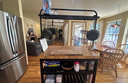 It's the perfect launching spot for going skiing, tubing, hiking, rock climbing, white water rafting - the outdoor options are endless. Want to stay home? Fully stocked kitchen, 2 fabulous fireplaces, comfy back deck with a sofa, chairs, fire table, and more. As you lounge on the back deck you'll be looking out on the Deschuttess River and national forest, where you'll see deer, coyotes, rabbits, and listen to the sound of frogs and crickets.