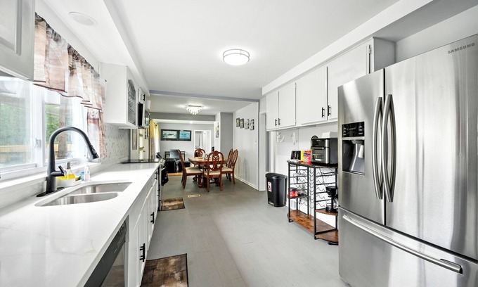 Escape to this brilliant house in picturesque Southfield. With 5 cozy bedrooms, including 1 queen bed, 4 full beds, and 2 bunk beds, guests will have plenty of space in the basement with a bar, game room, and jacuzzi to unwind. The 4 bathrooms are stocked with all the essentials, including a hairdryer and shower amenities. The deck is spacious for family gatherings, and there is a trampoline and swing for kids. Our place is equipped for both long and short stays to make your holiday one to remember.