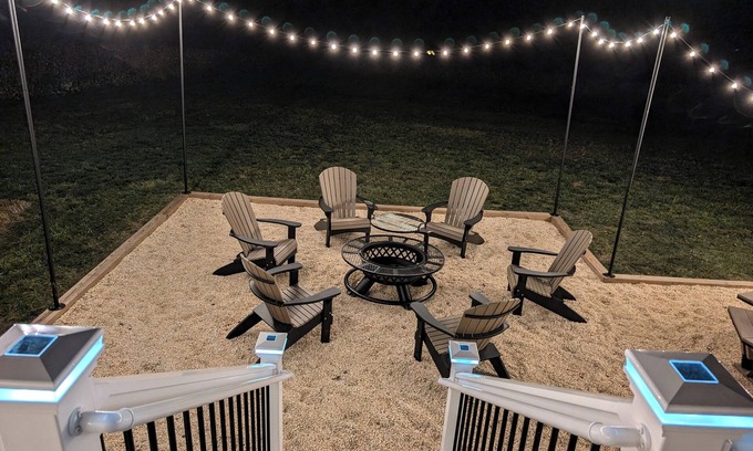 Outside offers a beautiful,spacious backyard where the options of games are endless should you choose to bring your outdoor games with you. Start up a fire in the campfire pit surrounded by Adirondack chairs and experience over the fire cooking or fire up the grill on the back deck and cook up the local, grass fed meat that we have provided for your stay. You have a choice of sipping your morning coffee on one of the patio chairs on the front porch or by the sectional lounge area in the back deck.