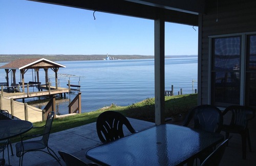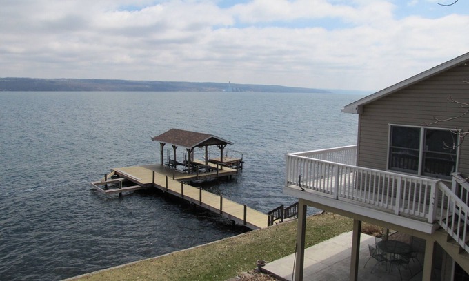 Enjoy the wrap around second floor deck or relax on the front patio or the huge dock. Take a swim out to the raft or launch your kayak or canoe from the beach. Go skiing or wakeboarding or fishing from your own boat which is easily accommodated on whips on the dock.
