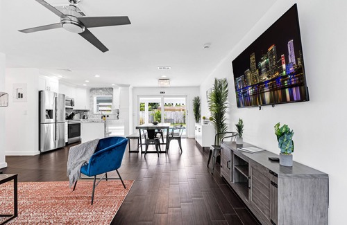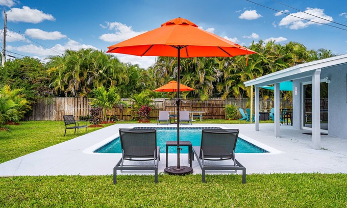Exquisite 5 bedrooms & 2 bathrooms vacation rental house in Fort Lauderdale, Florida only 13 mins drive from the Beach. This is a Tropical Oasis close to everything needed to live the good life! Great location only 7 miles from the Beach, 2 miles to Wilton Manors, 12 minutes to Downtown Las Olas, 10 minutes to FLL Airport. Walking distance to shops, restaurants, bars, markets and more.