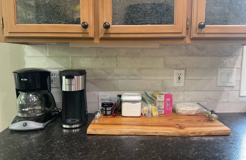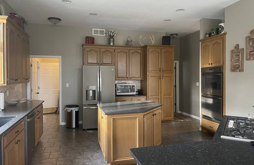 2 Family entertainment rooms, with large TV's. 2 fully furnished kitchens, with a total of 3 ovens for those large dinners. Kitchen small appliances include 4 slice toaster, Keurig coffee maker(just bring your favorite flavor), Drip coffee maker(filters provided), Blender, Griddle, Crock Pots, Insta Pot and more. Basic kitchen staples included for your convenience include tin foil, baggies etc. No need to pack salt, pepper, spices, sugar, flour etc. We have it for you! Our goal is to provide everything in the Kitchen that you could need, and wish you had at home. Washer and Dryer included, along with detergent etc.