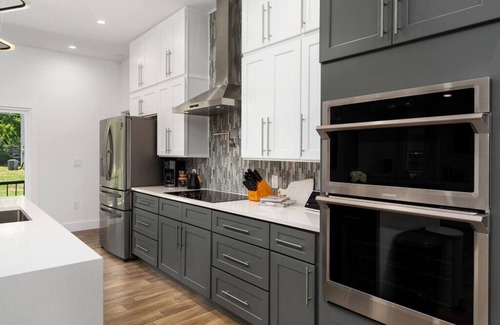 The gateway is centered near everything that the city of Austin has to offer. You are only minutes from the lake or to downtown. The location is impeccable, yet feels secluded and private. This 4800 sqft home is the epitome of luxury. Every single sleeping space is resort style, spacious and professionally designed. All bedrooms have their own private bathroom and you get to enjoy the luxury of having two separate houses with fully equipped kitchens and spacious living rooms in both residences.