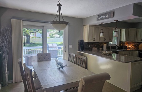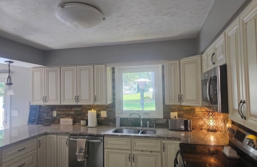 Experience Avon Lake like a local in this 7-bedroom house. With 1 king beds, 3 queen beds, 1 full bed, and 1 twin bed, this beautiful property offers plenty of space for guests to relax and unwind. Enjoy the convenience of amenities like AC, WiFi, and a washing machine during your stay. Immerse yourself in the comfort of this excellent retreat, complete with 4 full bathrooms. Experience what Avon Lake has to offer with a stay at our house. Walking trails are near by, beaches, restaurants, shopping, the library, walking trails and much more. The neighborhood is quiet and safe. This home has a fenced in backyard with a private patio with a firepit and grill. The fireplace in this house natural wood burning. This house is a unique gem!