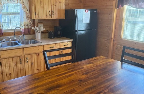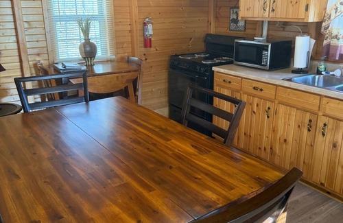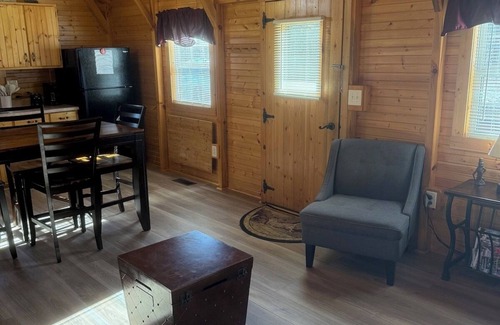 Spacious 740 sq ft Cabin w/Deck, Fire Pit & Disc Golf — Mins from Mammoth Cave is located in Mammoth Cave. Spacious 740 sq ft Cabin w/Deck, Fire Pit & Disc Golf — Mins from Mammoth Cave provides accommodation, featuring Bedding/Linens, Barbecue/Outdoor Cooking, Child Friendly, among other amenities. This Cabin features Bedding/Linens, Barbecue/Outdoor Cooking, Child Friendly, to make your stay a comfortable one.