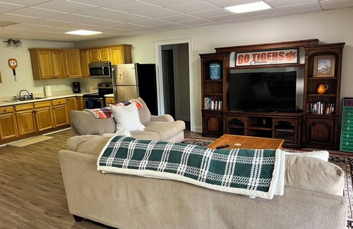 Waterfront home on Lake Keowee, 15 miles from Clemson Memorial Stadium! Great home for large groups coming in to spend time with family and friends on the lake, or for those coming in town for events at Clemson. House has 8 bedrooms, 4.5 bathrooms, 2 living room areas, 2 kitchens, a pool table that can be made into a ping pong table, spacious outdoor decks for gathering, gas grill, pleasant lily pad pond in the back yard, and a large driveway for parking multiple cars. Home is located at the back of a cove, so the water is very calm with no thru traffic of other boats to worry about. This home is new on the market for vacation rentals, so furniture and appliances are like new still! If you are looking for a large space to hold your next family reunion, a home to spend the weekend so you and your friends can attend the games going on at Clemson, or you just want a quiet get-a-way at the lake, then this home is for you!