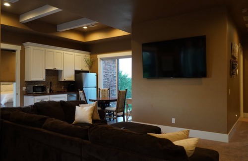 Stay comfortably in Stillwater at this 8-bedroom house. Each room is uniquely furnished with a king bed, full bed, queen beds, bunk beds, and a twin beds. This spacious property features amenities like swimming pool, inside basketball court, gourmet kitchen, large dinning room, ping pong table, wireless Wifi, . With 6 bathrooms offering bathtubs and showers, guests will have plenty of space to freshen up. Kickback, relax, and enjoy everything Stillwater and our house has to offer.