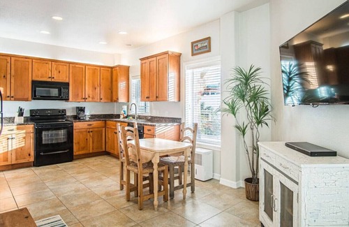 Stock the cabinets and full-size fridges with all of your favorite foods, or order take-out and enjoy it in the formal dining area or dine on the patios.