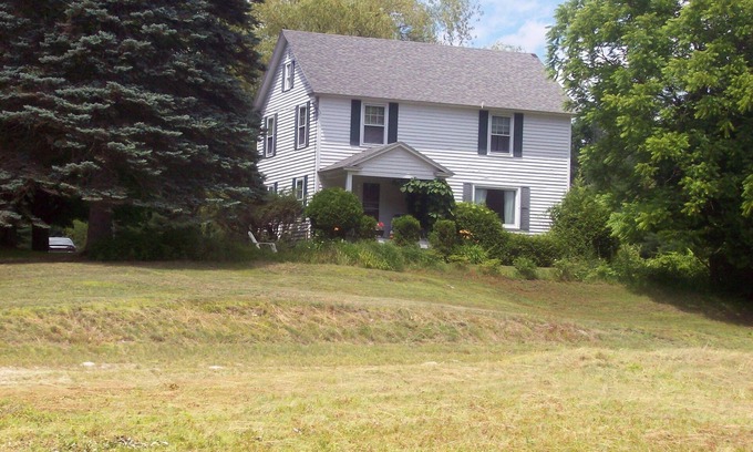 The house features 5 large airy bedrooms with cross ventilation, 2 full newly renovated bathrooms, newly renovated large eat-in kitchen with dishwasher. There is a separate dining room, large living room, and front porch with views of the mountains and the horse pasture. The back of the house looks out onto a mowed meadow and forest land. The house can sleep up to 10 people and is fully furnished and Includes kitchen appliances and utensils (toaster, microwave oven, gas oven, coffee maker, dishwasher and refrigerator). Also included is cable TV, VCR, and internet access. Outside activities include a basketball, badminton and volleyball as well as croquet and horseshoes.