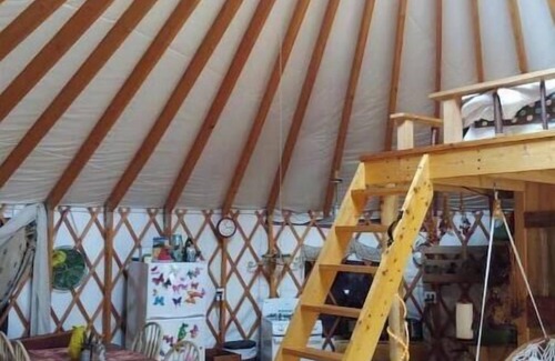 Discover this wonderful YURT in Worcester, 8 miles from downtown Montpelier, Vermont's beautiful capitol. This cozy gem offers a pleasant living room with 2 queen beds, with an air mattress - perfect for a quaint getaway. Guests can enjoy amenities like WiFi, heating, clawfoot tub, full kitchen, private bathroom, loft, and more. Worcester range views! Babbling brook and trails! Close to Wrightsville Reservoir and Lake/Mt Elmore! Our place is equipped for both long or short stays to make your holiday one to remember.
