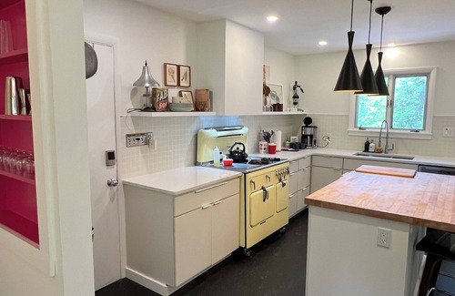 This stylish place to stay is perfect for group trips. Stay in touch with allll the Hudson Valley spots with this very centrally located roomy ranch. Kingston, Rosendale, New Paltz, Gardiner, Saugerties and Woodstock are all a hop skip and a jump.