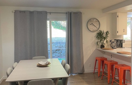 Family friendly! Located in a quiet residential neighborhood, just 7 minutes to downtown, 10 minutes to UofO campus and 15 minutes to airport! Updated, tastefully furnished house, with all stainless appliances, incredible kitchen with all the tools you need for your next chef's meal! Full size W/D in laundry room. Working wood burning fireplace, expansive fenced-in private backyard and deck with firepit means you can enjoy your evenings listening to nature or sipping your favorite beverage. Backyard gas Grill, hammock, bird feeders and patio table set ensures you'll enjoy the relaxation with your favorite beverage. Lots of trails for hiking nearby, bike lane right out front if two wheelin' is your thing, and just off the bus line. Take a daytrip to the Oregon coast! We're just 1 mile off of HWY 126 (you'll be at the Oregon Coast in less than an hour, or head east to the scenic Mckenzie River and local hotsprings!)