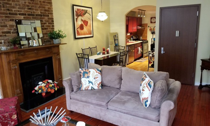 This spacious 1 bed room apartment consists of an entire floor! It is fully furnished and designed to give you comfort and a sense of familiarity. The character of this place is phenomenal! Unlike the generic feel you get in a hotel.