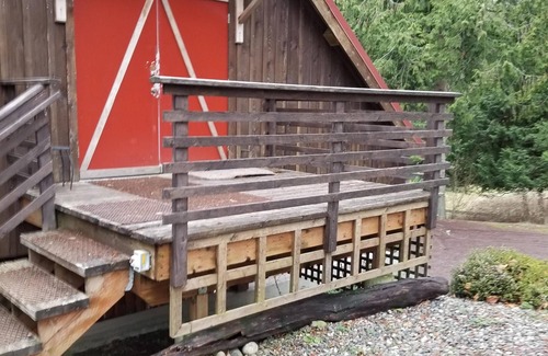 A get-away in the forest, yet only two minutes from I5 and five minutes from the charming Fairhaven area of Bellingham, this secluded guest house is nestled on the end of a dead-end street. This spacious 900 square feet charmer has its own entry and separate parking pad. The kitchen features a two-burner cooktop, an under-the-counter refrigerator, and a built-in microwave. The kitchen is stocked with cook ware and serving items, as well as coffee maker and Peets coffee. In addition to the queen bed in the bedroom, the living room features an ottoman that pulls out into a bed. The stereo has speakers in the living room as well as auxiliary speakers in the bedroom. The 50" smart TV includes basic channels and Amazon video access. The bathroom features a glassed-in shower, fluffy towels, and a blow dryer.