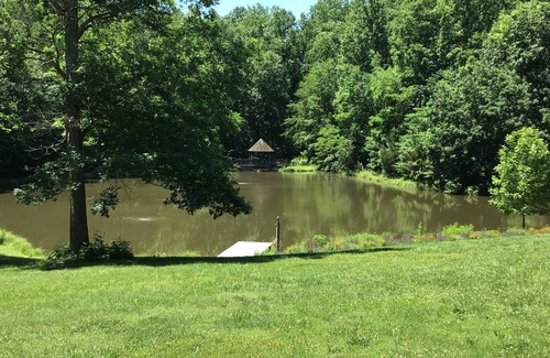 Forget your worries in this spacious and serene space. Adjacent to a peaceful pond with a dock and gazebo, this large studio is perfect for a couple seeking a quiet getaway for a weekend or an individual seeking a comfortable alternative to a hotel. The studio has a large sitting room with a wood-burning fireplace, a separate eating area (or office) and a spacious kitchenette. There is a lovely firepit by the pond and also an EV charging station available for our guests.